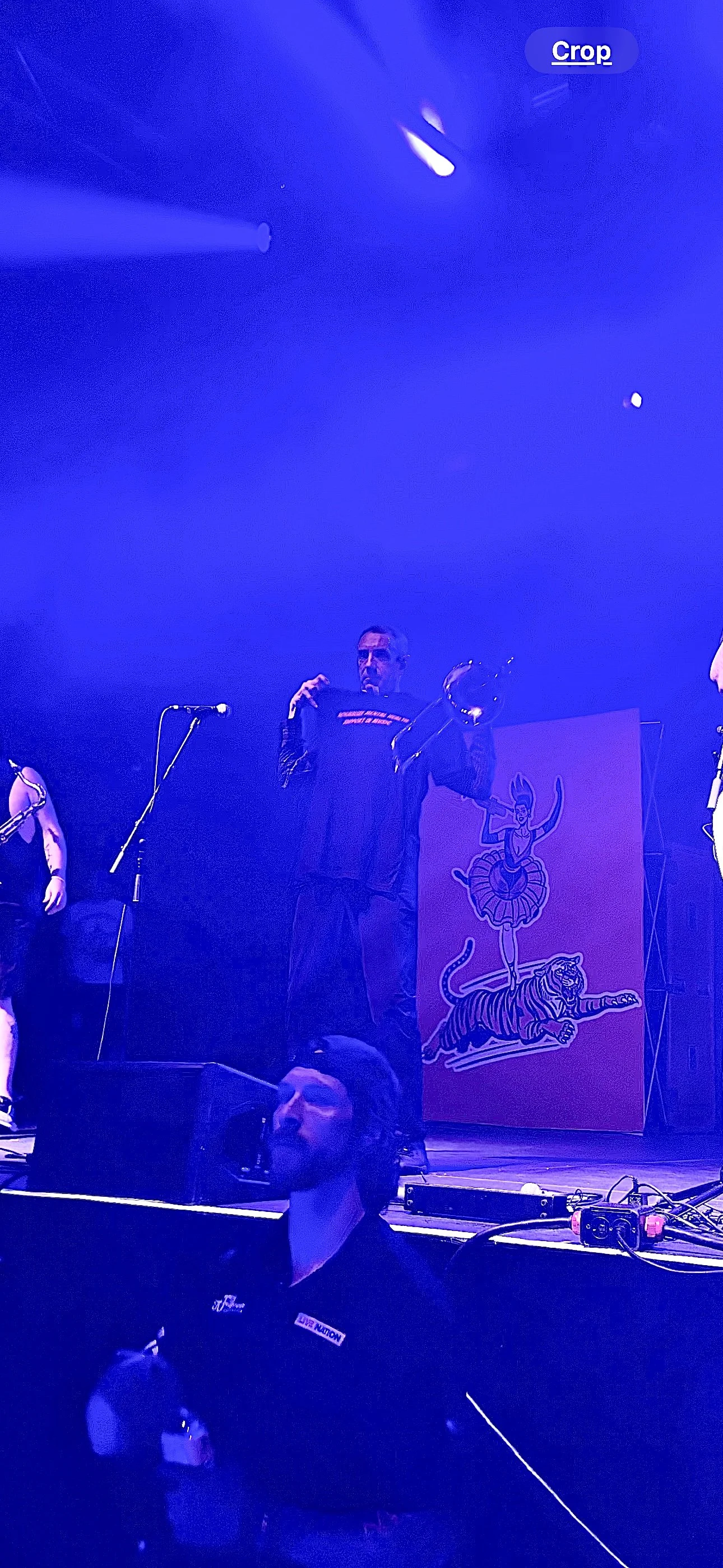 Jacob Bannon with Converge at Mission Ballroom, Denver, wearing a black and pink MH support tee.